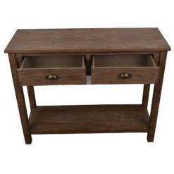 Traditional design and timeless character are the building blocks upon which the Morgan Console Table was designed. The quintessential transitional table that blends classic styling, modern updates, versatility and function. Two drawers provide an out of sight storage place for unsightly clutter. Stylishly house belongings in the two cabinets, each featuring a glass window frame door that adds charm to your living space. A slatted shelf expands your storage capability. A versatile piece that can be used as an entryway table, living room accent table or in a dining room as a buffet server. Measures 42x14x34.25 Constructed of wood.