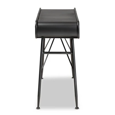 Add an artistic charm to your entryway with the Santo console table. Made in China, this piece contains three drawers to provide ample storage space for keys, mail, or supplies. A rounded frame and smooth angles give the Santo a chic look that helps it stand out in busy areas. This piece requires assembly and is supported by thin, angled legs that fit well in tight spaces and allow for additional storage space underneath. Oak brown finished wood drawer fronts, adorned with square handles, give the Santo an industrial charm that adds personality to any entrance. Dimensions: 31.9″ high x 45.7″ wide x 15.9″ deep; Drawer dimensions: 5.5″ high x 14.4″ wide x 14.8″ deep; Legs: 26″ high;