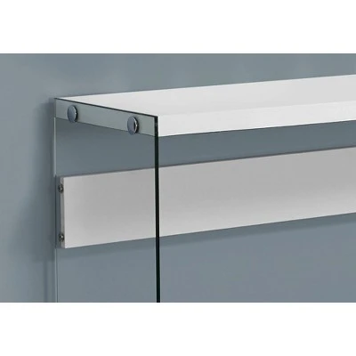 Adorn your living space with an enhanced minimalist entrance table that will allow you to showcase the beauty of your decor and flooring through the sturdy, easy-to-clean tempered glass base. Couple it with its trendy panel in a glossy white table top finish that can easily accommodate any decorations and accessories such as your books, glasses, photo frames and plants. Your new entryway table is ready for your new small home, condo or apartment. Assembly is required.