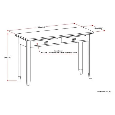 - Dimensions (Overall): 29.5 Inches (H) x 45.9 Inches (W) x 16.5 Inches (D)