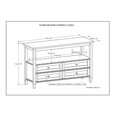- Dimensions (Overall): 29.5 Inches (H) x 48 Inches (W) x 17.5 Inches (D)