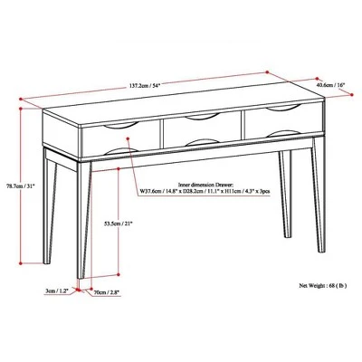 The Pearson Console Table is inspired by mid-century silhouettes. The console table is crafted of solid hardwood with a rich Walnut Brown finish. Complete with three drawers with notched handles this stylish piece offers plenty of storage space. The Pearson Console Table offers versatility allowing you to use in the living room, the dining room, or entryway.