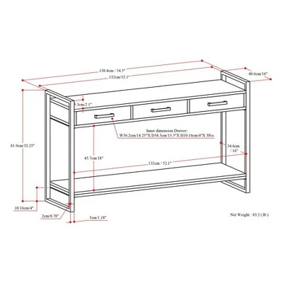 Bring a functional aesthetic to any room in your home with The Lawson Console Table. This Console Table has a Rustic Industrial Style that will add a stylish touch to your home. Standing at 32ā high and 54.5ā wide, this piece offers a great amount of room for you to add your own personal touch. From placing family photos or somewhere to lay your keys when you get home, the Lawson Console Table is a chance for you to show your unique style.