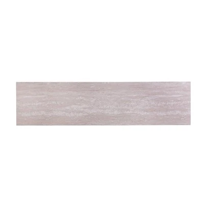 Raise your glass to the Aiden Lane Brampton Faux Stone Console Table. A lifelike, simulated travertine top complements a champagne-finished metal frame, adding a pop of pizazz to your living area. The open display shelf provides endless dƩcor opportunities, while the spacious top houses table lamps and art books. Slide this statement making sofa table into your living room for stylish storage, or place in your entryway for a functional display that wows.