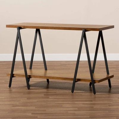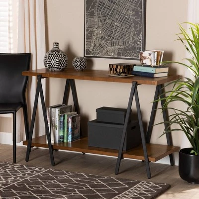 Britton Rustic Industrial Wood and Metal Console Table-Walnut/Black-Baxton Studio