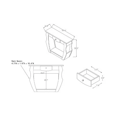 - Compartment 1 Type: Drawer (1): 3.5 Inches (H) x 11.2 Inches (W) x 7.9 Inches (D)