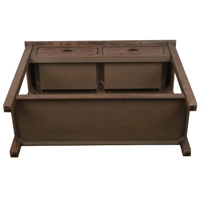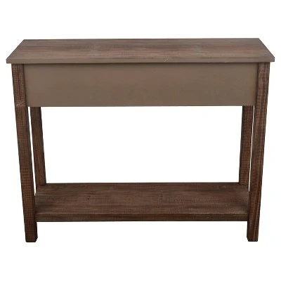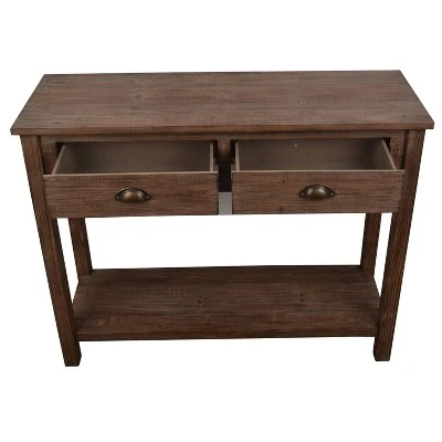 Our Vintage Distressed Console Table is designed to stylishly display your accents while providing storage in your living room or entryway. Constructed of wood with a vintage distressed finish for a rustic, timeworn feel. Adding to the benefit of this accent table are the two storage drawers, a lower shelf and bronze finished hardware. Measures: 38.75x14x30.75″