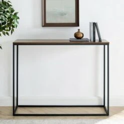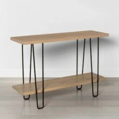Turn any spare space in your home into a sleek decorative display with this Ellwood Mid-Century Modern Wood Console Table from Project 62™. Built from solid wood for durability, this console table brings mid-century charm and modern style to your space. The wooden console table comes with a smooth tabletop to showcase framed photos, potted plants and more, while two drawers and two open lower shelves are great for displaying your go-to reads or tucking away everyday items. Striking a clean-lined silhouette, this rectangular console table complements nearly any design aesthetic or color palette.