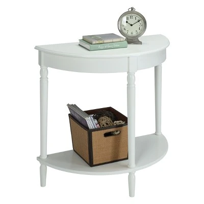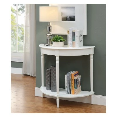 The French Country Entryway Table is the perfect way to greet your guests, or welcome you home. The beautiful wood grain finish, and carved legs combine sophistication and elegance. Also featuring a bottom shelf for additional storage, or welcoming pieces, and it is half moon shape helps reduce bulk. Coordinating items are available and sold separately.
