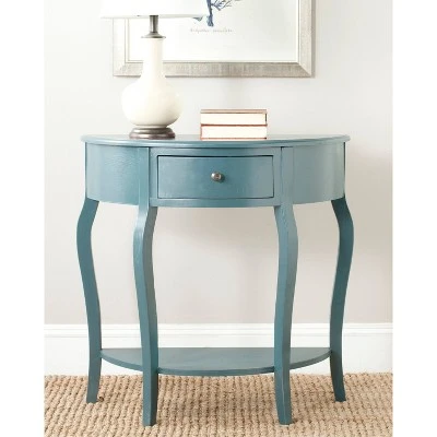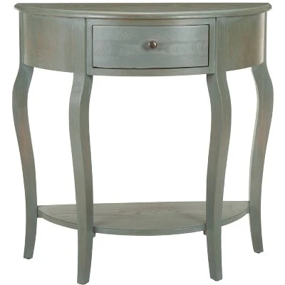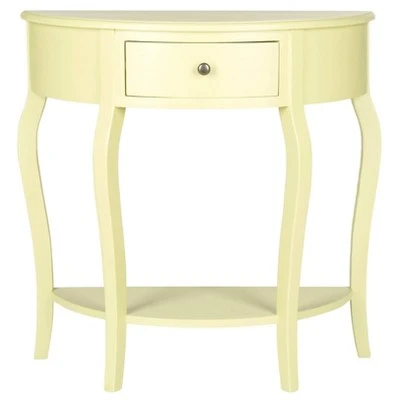 Despite its diminutive stature, the Jan Demilune console has presence. Classic and elegant, but not stuffy, the piece is crafted of Pine wood with a crisp colored finish and features gentle curved legs paired with a pullout drawer and shelf. Form and function exist in perfect harmony with this transitional console. This storage console table can support up to 35 lbs. The Jan Demilune console is a great choice for Contemporary, Nautical or Transitional style interiors.