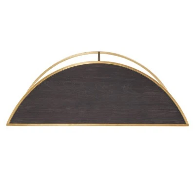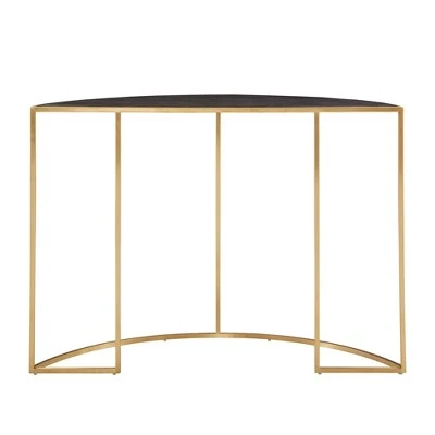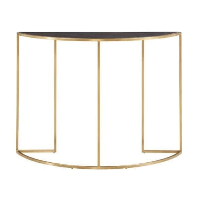 Deliver a look straight out of Hollywood right in your home with the Jocelyn Antique Gold Finish Metal Half Round Sofa Table from Inspire Q. With a fashion-forward and function half-round design, you can set this sofa table up anywhere, from the living room to the entryway to the dining room. The sleek and slender base is finished in a lovely antique gold that lends to both vintage vibes and glam styles. There is ample space on the smoky-hued table top to decorate with lamps, vases, photographs, and pieces of décor so you can showcase your personal style.