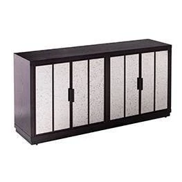 Say goodbye to disorganized clutter with the Aiden Lane Louis Mirrored Console Cabinet. Interior shelves help you divide and conquer china and flatware in your dining area or board games and media in the living room, while mirrored doors reflect your home for a spacious feel. Family photos and décor pieces find their place across the wide tabletop, adding personalized accents to a classic look. Slide this mirrored storage credenza into your entryway to corral shoes and accessories, or station in your open concept living space as a sideboard buffet and top with finger food at your next social gathering.