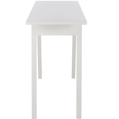 A modern interpretation of the centuries old refectory table, this sophisticated white lacquer console table alludes to the new rustic chic style. With its sleek lines and splayed legs, this console works equally well in the living room or entry hall. Care Instructions: Dust regularly with a soft, dry cloth. Never use oiled or treated cloths on lacquered finishes. Some finishes can be wiped with a damp (not wet) cloth, followed at once by rubbing with a dry cloth to remove fingerprints and smudges. For persistent spots, gently clean with a soft cloth and a solution of water and mild soap, make sure to wipe dry. Use adhesive felt pads, coasters and placemats to protect your furniture.