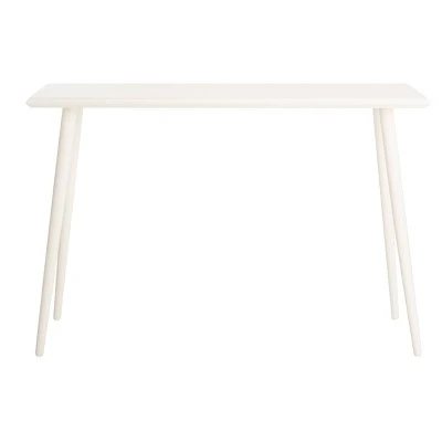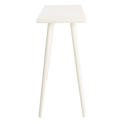 Crafted with a pine wood blend, this modern console table features a smooth top paired with curved and sleek legs that make a sophisticated statement in any contemporary interior. The neutral hue of this table was created by a special water-based paint finish. This paint color makes the item easy to style and match with other transitional or modern decor. The skinny and slim build of this table maximizes space in an area, great for the minimalist.