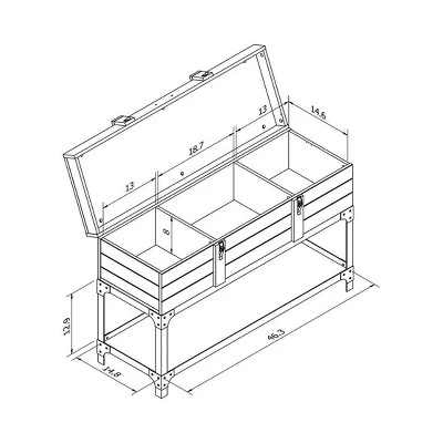 - Compartment 3 Type: Shelf (1): 12.9 Inches (H) x 46.3 Inches (W) x 14.8 Inches (D)