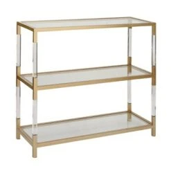 - The wooden shelves of this brown console table are encased in sturdy metal frame and caster wheels are securely attached to its base