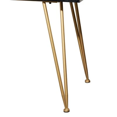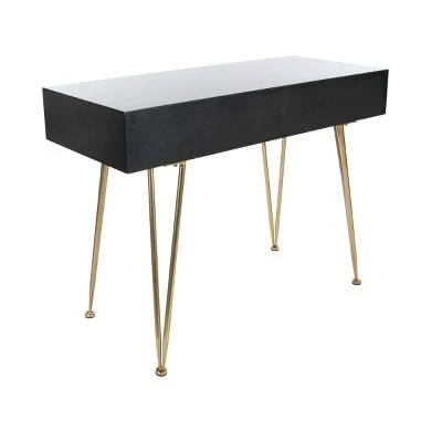 - Conveniently furnished with 3 storage drawers fashioned with bar black handles and gold-finished edges