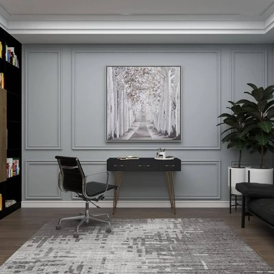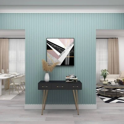 This console table with drawers and shelf carry a modern-designed tabletop and hairpin legs that can support table displays and store personal belongings. Bring a finishing touch to your home with an inviting appeal with this console table. A sturdy and long lasting construction that for a years of enjoyment. Designed with protective stoppers at the base that prevent scratching furniture and table tops, as well as sliding around. 3 pull-out drawers measures. Suitable for indoor use only. Some assembly required. Maximum weight limit is 100 lbs. Modern design.