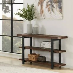 36" Rivers Edge Acacia Wood and Acrylic Narrow Console/Entryway Table Brown – Alaterre Furniture