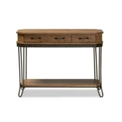 3 Drawer Kellyn Vintage Rustic Industrial Wood and Metal Console Table Brown/Black – Baxton Studio