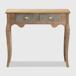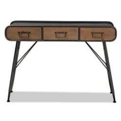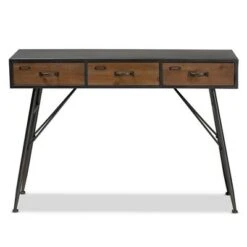 3 Drawer Santo Metal and Oak Finished Wood Console Table Black/Walnut Brown – Baxton Studio