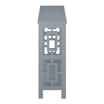 Bring home the eye-catching Town Square Console Table with Shelf by Breighton Home. This simple yet stylish console table showcases an Asian-inspired design with its unique square side panels. An additional bottom shelf provides plenty of decorative space or can be used as storage space if needed. This carefully crafted unit is constructed from MDF and finished with non-lead-based paint for safe, long-term use. Coordinate this console table with additional pieces from the Town Square Collection by Breighton Home, each sold separately.