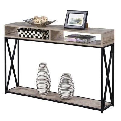 The Tucson Deluxe Console Table with Shelf by Breighton Home makes for the perfect addition to any home. Featuring two open compartments, this additional space is perfect to store anything from books to collectibles. This console table also includes a bottom shelf for additional storage and display. This Tucson Console Table is crafted with a powder coated metal frame to ensure stability and durability. Available in multiple finishes, this console will complete the look of any decor. Shop the Tucson Collection by Breighton Home, each sold separately.
