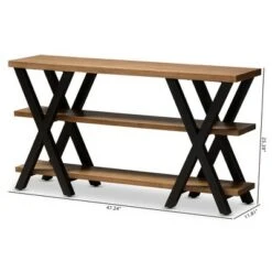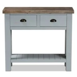 Combining European stylistic elements with genuine Southeast Asian wooden construction, the Vologne Wood Traditional French Console Table straddles the continents. This console table sports a genuine bayur wood semi-oval top and a distressed, antiqued finish complete with authentic white streaking. Distinctive styling at a discount price. Dimensions: 31.50″ High x 41.50″ Wide x 16.00″ Long; Shelf dimensions: 23.60″ High x 37.00″ Wide x 14.00″ Long